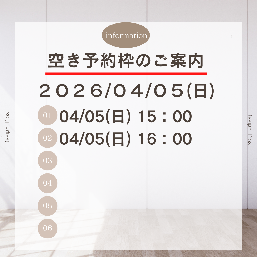 4/5(日) 予約枠 空きあり