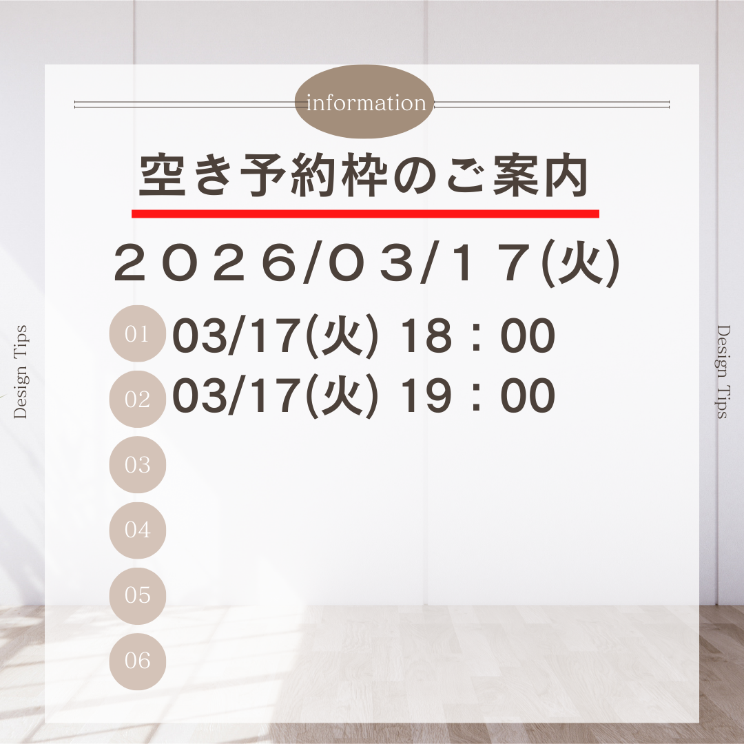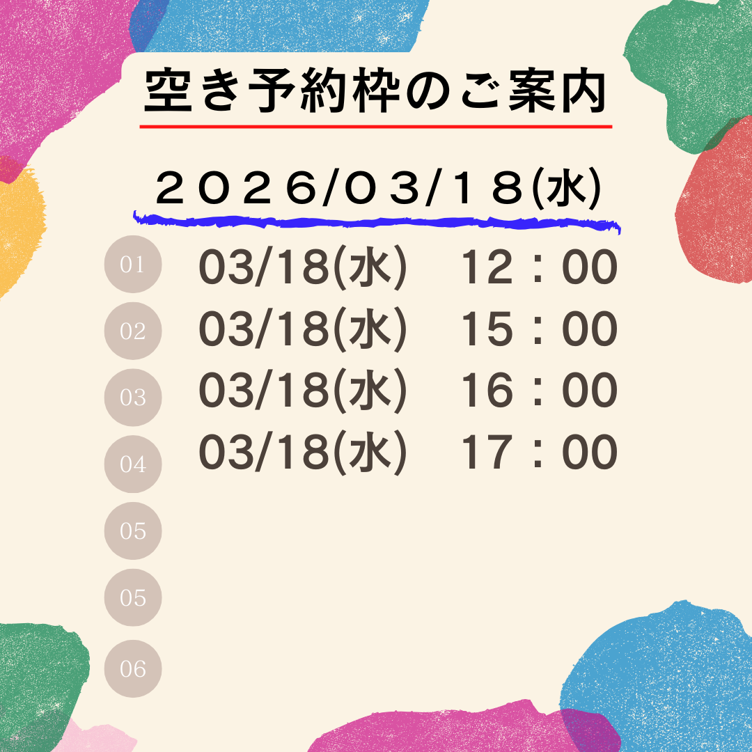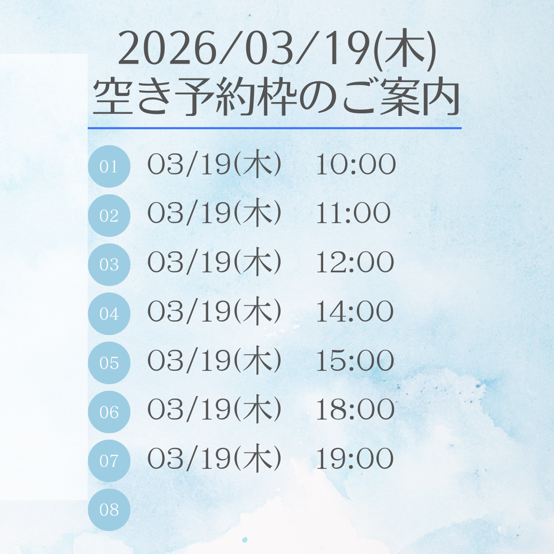 3/17(火)・18(水)・19(木) 予約枠 空きあり
